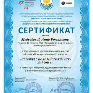 В 2015-2016 учебном году количество обучающихся, освоивших государственные учебные программы по английскому языку, составило 178 человек. Количество обучающихся на «4» и «5» составило 75%. Оставленных на повторное обучение нет.